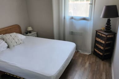 Mon appartement, idéalement situé, comprend deux chambres (une avec un lit double et l'autre avec des lits superposés), une salle de bain, une cuisine entièrement équipée, un espace repas, et un salon avec canapé convertible. Vous pourrez également profiter d'un balcon meublé.