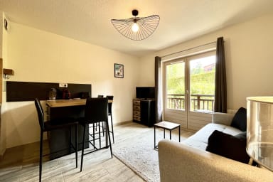 Entièrement rénové, cet appartement moderne dispose d'une pièce à vivre spacieuse et lumineuse, équipée d'une télévision et d'une connexion Wi-Fi pour vous détendre après une journée bien remplie. Le coin cuisine est parfaitement aménagé avec un four, un micro-ondes, une machine à café et un appareil à raclette, vous permettant de savourer de délicieux repas sur place.