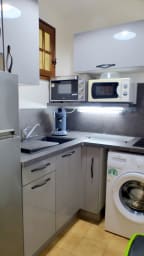 Le studio est entièrement équipé pour que vous vous sentiez chez vous. Vous y trouverez une télévision pour vos moments de détente, ainsi qu’une machine à café pour bien commencer votre journée. La cuisine est équipée d'un four, d'un micro-ondes et d’un lave-linge pour un séjour autonome. Un ventilateur est également à votre disposition pour assurer un confort optimal durant les journées plus chaudes. Vous pourrez également profiter d'un balcon privé pour vos moments de détente en extérieur.