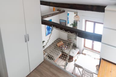 - un coin nuit en mezzanine avec un lit double ;