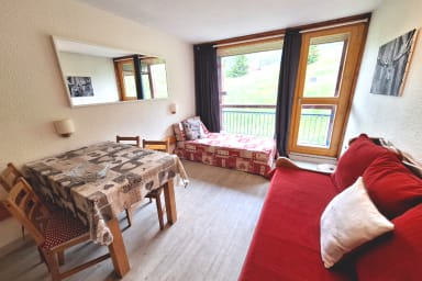 Situé au 1er étage avec ascenseur, l'appartement est chaleureux, bien aménagé et conviendra parfaitement pour des vacances au ski en famille ou entre amis. Pouvant accueillir quatre personnes, il comprend un coin montagne avec un lit superposé, deux lits simples dans le salon, une salle de bain, une cuisine toute équipée, un coin repas dans la pièce principale donnant sur le balcon offrant une jolie vue dégagée.