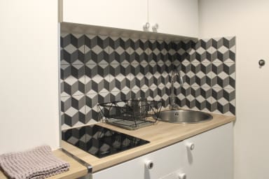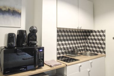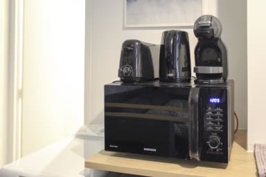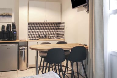Conçu pour accueillir jusqu’à 2 personnes, ce studio allie confort et fonctionnalité. Il comprend un espace nuit avec lit double, un coin salon convivial avec canapé, une salle de bain pratique, ainsi que tout le nécessaire pour votre séjour : machine à café, four, micro-ondes, lave-linge, fer à repasser, sèche-cheveux, etc.