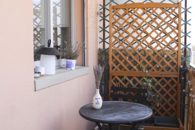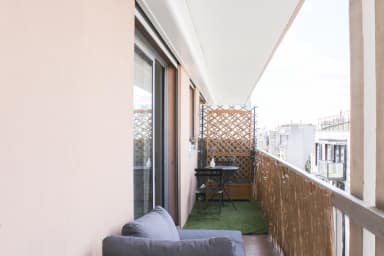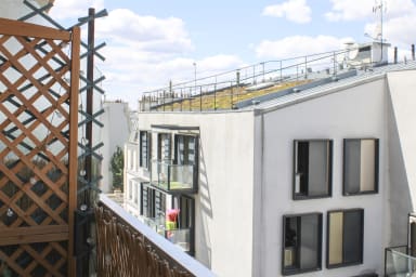 - un balcon et une terrasse meublé pour prendre l'air et profiter de la vue sur les toits de Paris.