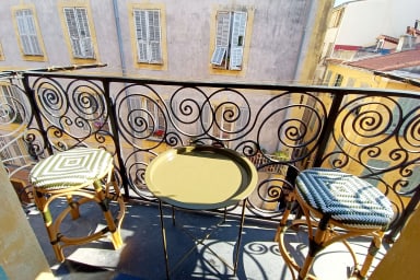 - un séjour chaleureux avec un canapé convertible (140x200). Il s’ouvre sur un balcon, parfait pour profiter de l’air doux de la Côte d’Azur.