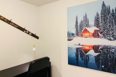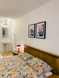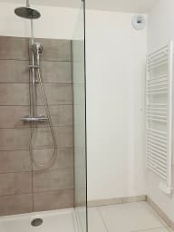 Il se compose d’une première chambre avec un lit double (160 x 200 cm) et une douche privative attenante, d’une seconde chambre avec deux lits simples (90 x 190 cm), d’une salle de douche moderne indépendante, d’un studio aménagé pour le télétravail, et d’un salon chaleureux avec un canapé convertible (160 x 190 cm), parfait pour vous détendre après une journée bien remplie.