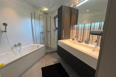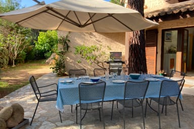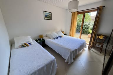 Pour votre confort, vous profiterez d’une cuisine entièrement équipée, de deux salles de bain, d’un espace de travail, de chambres climatisées, d’un salon chaleureux et d’une terrasse conviviale. L’équipement complet comprend également un lave-linge, une télévision, une chaise haute, une baignoire, une douche extérieure, une machine à café, un four, un micro-ondes, un sèche-cheveux, un ventilateur et une plancha à gaz. Vous aurez aussi le plaisir de profiter d’un espace ping-pong, de mobilier de jardin et d’un jardin plat et clos, sécurisé par un portail automatisé.