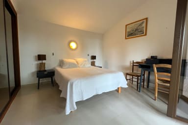 Vous y trouverez deux chambres équipées de lits doubles 150x200, ainsi qu’une troisième chambre disposant d’un lit simple 90x200 et d’un lit double 150x200. Deux lits bébé 60x120 avec matelas sont également disponibles pour les plus petits.