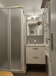 Vous profiterez d’une salle de douche fonctionnelle, d’une cuisine entièrement équipée et d’un espace de travail dédié.