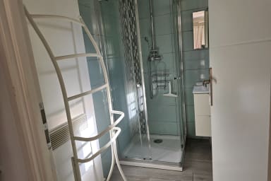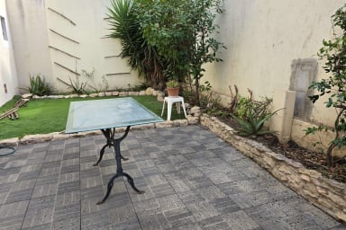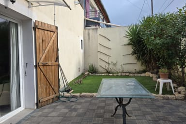 Profitez également d’une salle de douche fonctionnelle et d’un espace repas avec une table et des chaises, sans oublier la terrasse et le jardin privatif où vous pourrez prendre l’air en toute tranquillité.