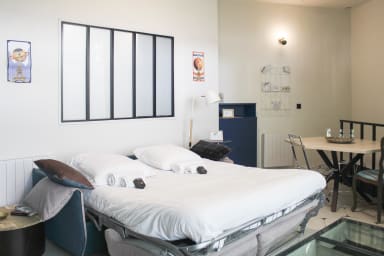 Vivez une expérience hors du commun en séjournant dans la Suite Paris Cosmic, un loft unique transformé en véritable galerie d’art habitée. Conçu et rénové par le studio de création PACAUD CONCEPT, ce cocon artistique de 7 couchages mêle design, confort et imagination. Idéal pour les familles ou les groupes d’amis, chaque recoin y raconte une histoire et stimule la créativité.