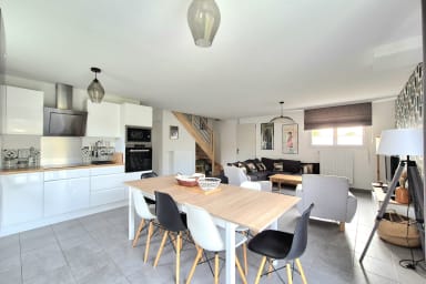 Tout le nécessaire pour un excellent séjour est à votre disposition, incluant le Wifi, un sèche-cheveux, une télévision, un lave-vaisselle, un lave-linge, un sèche-linge, un lit parapluie, une machine à café, un réfrigérateur, un barbecue, un micro-ondes, un four, un fer à repasser et un appareil à raclette. Les draps et les serviettes sont inclus dans les frais de ménage pour votre plus grand confort.