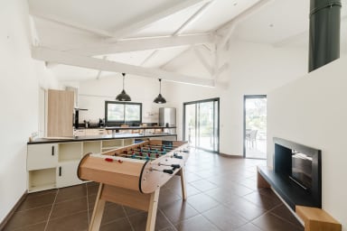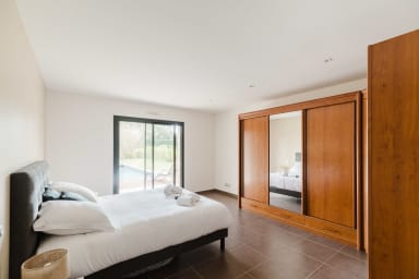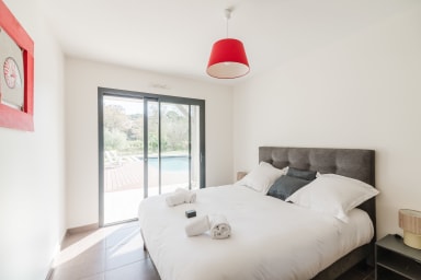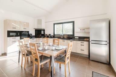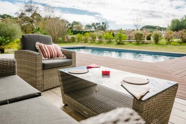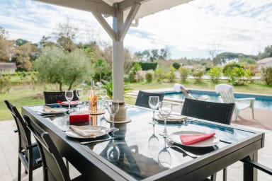 Bienvenue à " La villa Pitéou" .☀️Tout confort, la villa offre de beaux volumes modernes , toutes les pièces sont de plain pied avec une structure en L et ouvrent sur une grande terrasse carrelée et bois autour de la piscine