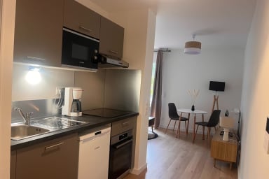 Vous apprécierez particulièrement sa praticité et sa luminosité, qui en font un espace agréable à vivre. Tout ce dont vous avez besoin pour un séjour réussi est à votre disposition, notamment le Wifi, un sèche-cheveux, une télévision, un lave-linge, une machine à café, un micro-ondes, un four et un fer à repasser. Veuillez noter que les draps et les serviettes sont fournis avec un supplément.