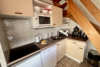 La salle de douche fonctionnelle et la cuisine entièrement équipée vous permettront de profiter pleinement de votre séjour.