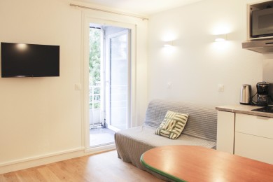 Vous profiterez de tous les équipements nécessaires pour un séjour confortable, incluant le wifi, une télévision, un fer à repasser, un micro-ondes, un four et une machine à café. De plus, le studio est accessible aux personnes en mobilité réduite et vous aurez la possibilité de bénéficier de services hôteliers dans l’immeuble, tels que le petit déjeuner, des salons de jeux, et un parking privé payant à réserver à l'accueil de l'immeuble.