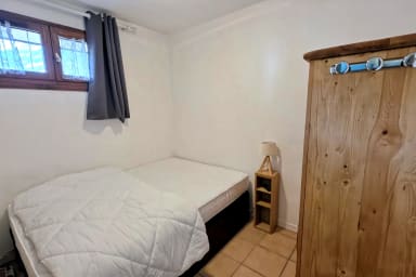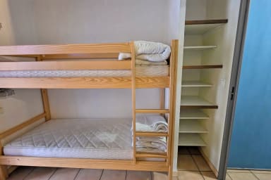 Tout confort, il comprend un coin montagne avec un lit superposé 90x190, une chambre avec un lit double 140x190, une salle de douche fonctionnelle, une cuisine entièrement équipée, et un espace salon avec un canapé.