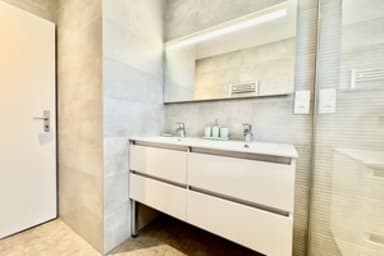 Pour votre confort, deux salles de bain fonctionnelles sont à votre disposition, celle du RDC avec une grande douche à l'italienne et celle du 1er étage avec une baignoire. Elles sont toutes les deux équipées avec des matériaux de qualité.
