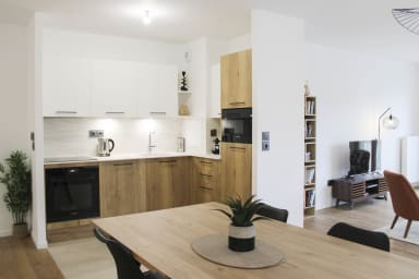 Pour votre confort, le logement est doté de nombreux équipements modernes, incluant le Wifi, une télévision, un lave-linge, un fer à repasser, un sèche-cheveux, un lave-vaisselle, un micro-ondes, un four et une machine à café Nespresso.