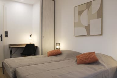 Tout neuf, il comprend une chambre avec un lit double 160x190 et une autre chambre avec deux lits simples 90x190.