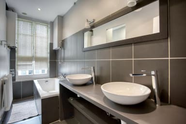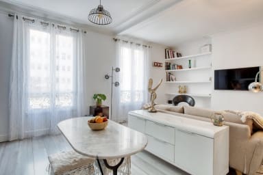 L'appartement accueille confortablement jusqu'à 2 personnes, avec un salon cosy pour vous détendre après une journée de découverte de Paris. La cuisine toute équipée (Nespresso, lave-linge, lave-vaisselle, sèche-linge) vous permet de préparer vos repas facilement. La salle de douche complète cet espace pratique et accueillant.