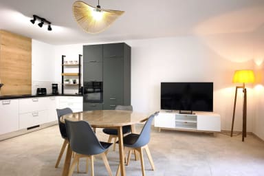 La cuisine moderne est toute équipée avec lave-vaisselle, four, micro-ondes et tout le nécessaire pour préparer vos repas comme à la maison.