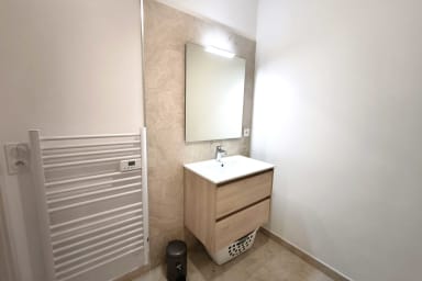 L'appartement dispose également d'une salle de bain complète avec sèche-cheveux, d'un lave-linge et d'un balcon pour profiter de la douceur corse.