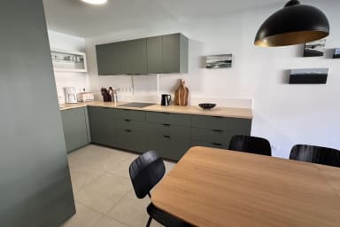 Le logement est parfaitement équipé avec une cuisine complète comprenant un four, un micro-onde, un lave-vaisselle, une machine à café ainsi que des appareils à fondue et à croque-monsieur pour vos soirées montagnardes. Vous profiterez également d'un confort total grâce au lave-linge, au sèche-linge, au fer à repasser et au sèche-serviettes dans la salle de bain.