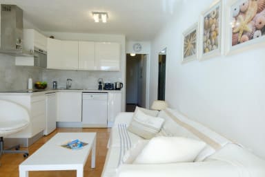 La cuisine est entièrement équipée pour répondre à tous vos besoins avec une machine à café, un lave-vaisselle, un micro-onde et un réfrigérateur. Vous profiterez également d'une salle de douche et de nombreux équipements pratiques tels qu'un lave-linge, un fer à repasser, un sèche-cheveux et un ventilateur pour les journées ensoleillées. Un parking ou garage est également disponible pour votre véhicule.