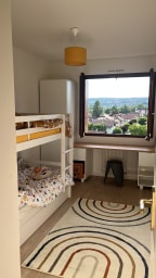 Vous disposerez de trois chambres : deux chambres avec un lit double de 160x200 et une troisième chambre avec un lit superposé de 90x200.
