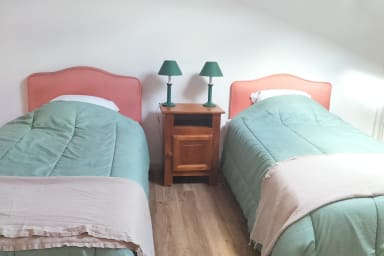 La configuration des couchages comprend une première chambre équipée de deux lits simples ainsi qu'une seconde chambre disposant d'un lit double, permettant d'accueillir confortablement jusqu'à quatre personnes, un lit parapluie est également mis à votre disposition pour les plus petits.