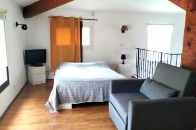 Pour vos nuits, le logement dispose d'une chambre accueillante équipée d'un lit double de 140x190. Un second espace nuit, situé en mezzanine, abrite également un lit double de 140x190, offrant ainsi une configuration de couchage pratique.